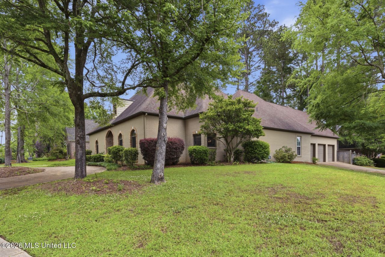 Welcome to this spacious five bedroom, four and a half bath home which sits beautifully on a desirable corner lot, offering a functional and flexible floor plan designed for both everyday living and entertaining. The main level features a private primary suite with direct access to a covered patio --perfect for relaxing mornings or quiet evenings. The spa-like primary bath includes, a jetted tub, and a separate shower creating a true retreat. A welcoming foyer opens into a formal dining room to the right and a generous living room, complete with built-ins and a fireplace ahead. Large windows radiate the beautiful natural light. Beautifully designed living spaces flow seamlessly, making the home feel both open and inviting. To the left of the foyer, you will find two bedrooms (one now used as an office), with a jack and Jill bath, while the right side offers a private mother-in-law suite with its own en-suite bath, ideal for guests or multigenerational living. The spacious kitchen is truly a cook's delight, featuring an oversized granite island with bar seating, perfect for casual meals or gatherings with guests. Designed as the heart of the home, it offers a warm and inviting atmosphere with an open flow into the breakfast area and keeping room, ideal for everyday living and entertaining, equipped with double ovens, and a smooth electric cooktop, this kitchen combines style and functionality. A thoughtfully placed corner sink, along with abundant cabinet and pantry storage, ensures both convenience and efficiency for any home chef. A full size laundry room with sink is conveniently off the kitchen. Upstairs includes an additional full bedroom and bath, along with ample storage space to keep everything organized. With this thoughtful layout, versatile spaces and comfortable charm, this home is perfectly suited for a variety of lifestyles. The home's well-landscaped yard and circular drive create a welcoming first impression, while beautiful mature trees provide shade and natural charm across the yard. Ideally located in the heart of Ridgeland, this property offers easy access to I-55, as well as nearby churches, restaurants, and shopping. Outdoor enthusiants will appreciate the walking trails to the Natchez Trace Parkway, perfect for walking, biking, and enjoying nature. Come make this your home!